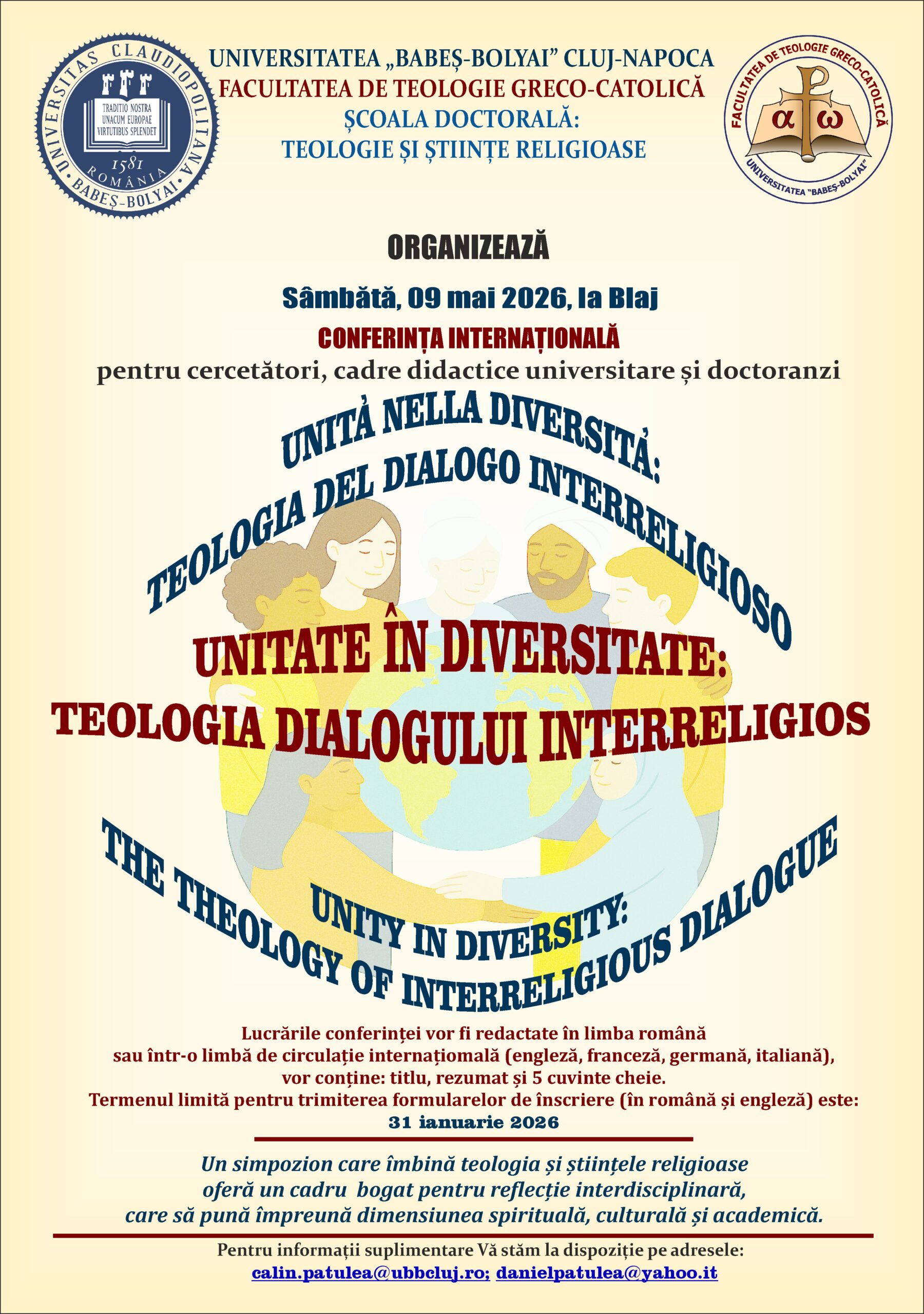 Conferință internațională la Blaj „Unitate în diversitate: teologia dialogului interreligios”, 09 mai 2026 de Zaharie Pintea | nov. 27, 2025 | Uncategorized