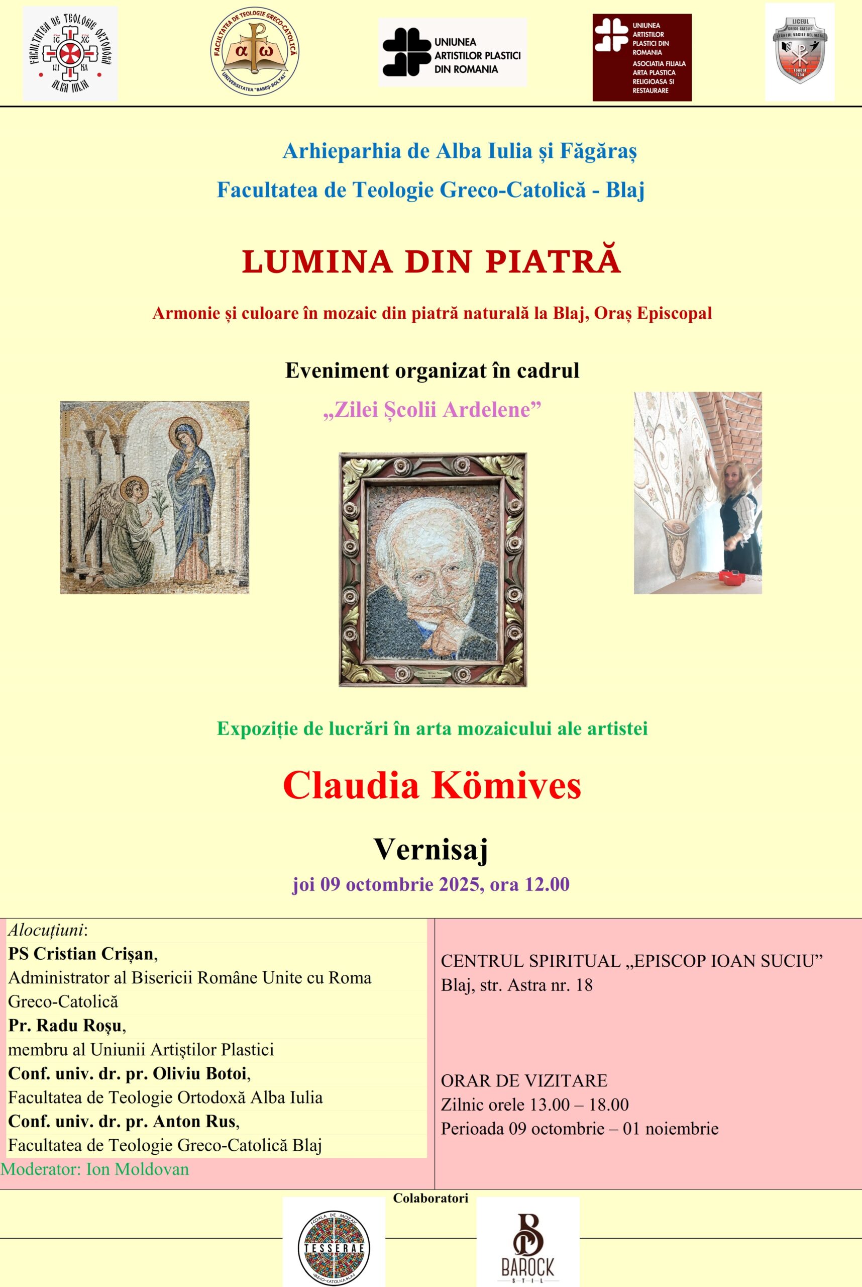 LUMINA DIN PIATRĂ. Expoziție de lucrări în arta mozaicului ale artistei Claudia Kömives de Zaharie Pintea | oct. 6, 2025 | Uncategorized